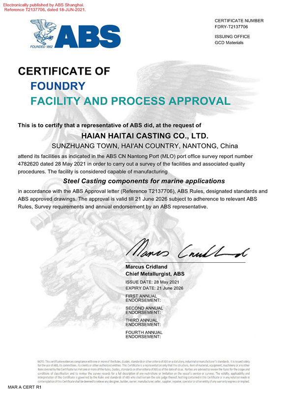 海安海太鑄造有限公司是一家民營法人獨(dú)資企業(yè),位于江蘇省海安縣高新技術(shù)開發(fā)區(qū),公司下設(shè)全資子公司江蘇鵬飛海太機(jī)械有限公司和上海辦事處,總注冊(cè)資金2.2億人民幣。距啟揚(yáng)高速(S28)海安西出口3公里,距上海機(jī)場(chǎng)、南京機(jī)場(chǎng)僅2小時(shí)車程。公司占地面積99800多平方米,現(xiàn)有建筑面積53600多平方米,擁有2個(gè)鑄鋼生產(chǎn)車間。2014年投資1.2億,新建2萬平方米的金工車間,并與2015年3月投入生產(chǎn)。公司擁中高級(jí)職稱技術(shù)管理人員56人。2017年繳納國地兩稅3300多萬元。